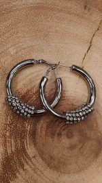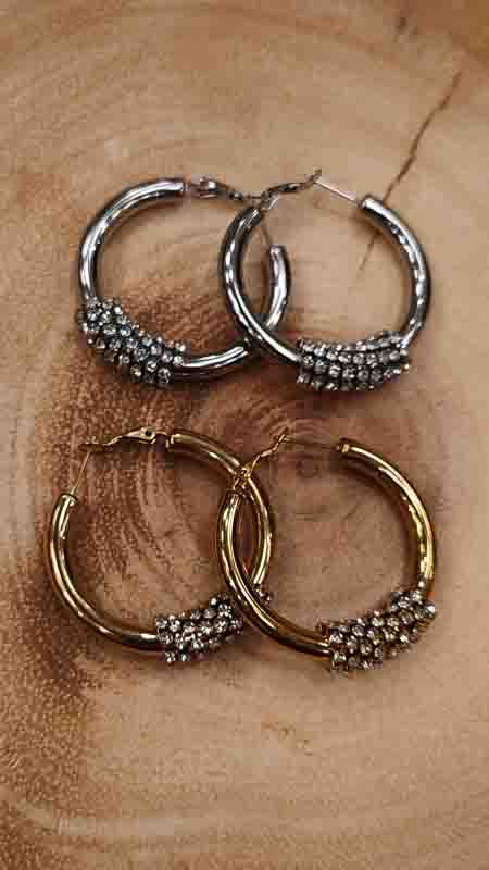 Ατσάλινα σκουλαρίκια με λεπτομέρειες στρας