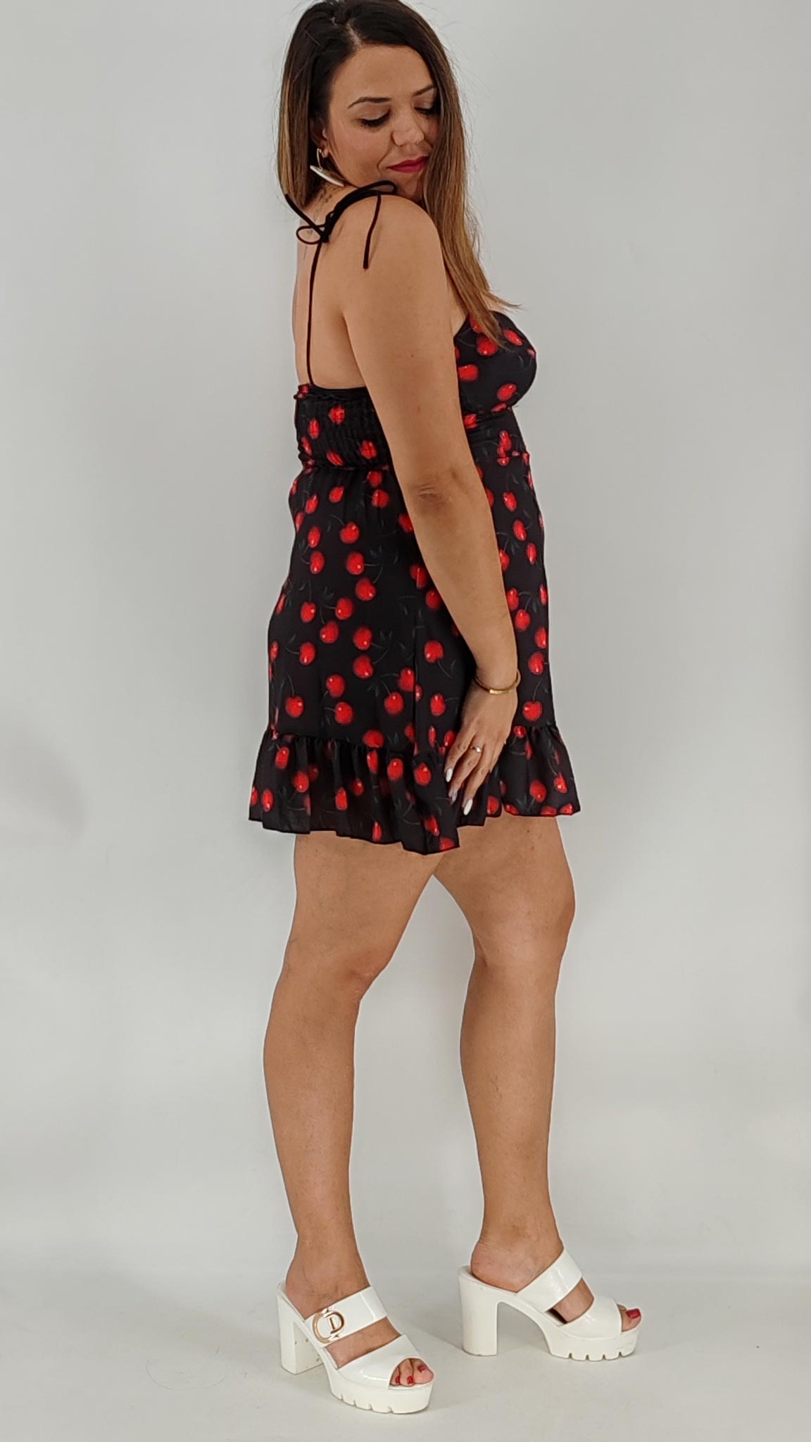Φόρεμα μίνι από λεπτό σκούμπα, διαθέτει cups στο στήθος και σφιγγοφωλιά στην πλάτη. Έχει δέσιμο με ραντάκι λάστιχο και είναι one size.