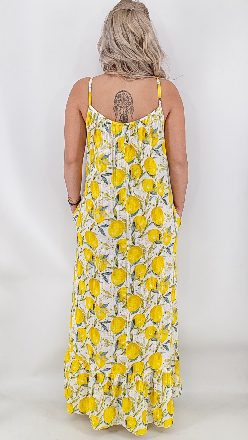Φόρεμα maxi με ράντα από βαμβακερή γάζα εξαιρετικής ποιότητας σε άνετη ριχτή γραμμή με τσέπες και ιδιαίτερο print. One size, καλύπτει από S έως 3ΧL