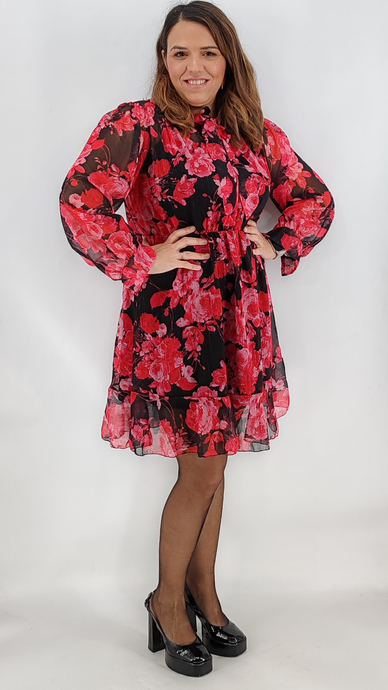 Φόρεμα από ύφασμα μουσελίνα με ημιδιαφάνεια στο πάνω μέρος, σεμιζιέ έως και το λάστιχο, και ενσωματωμένη φόδρα στη φούστα . One size και καλύπτει από S έως 2ΧL