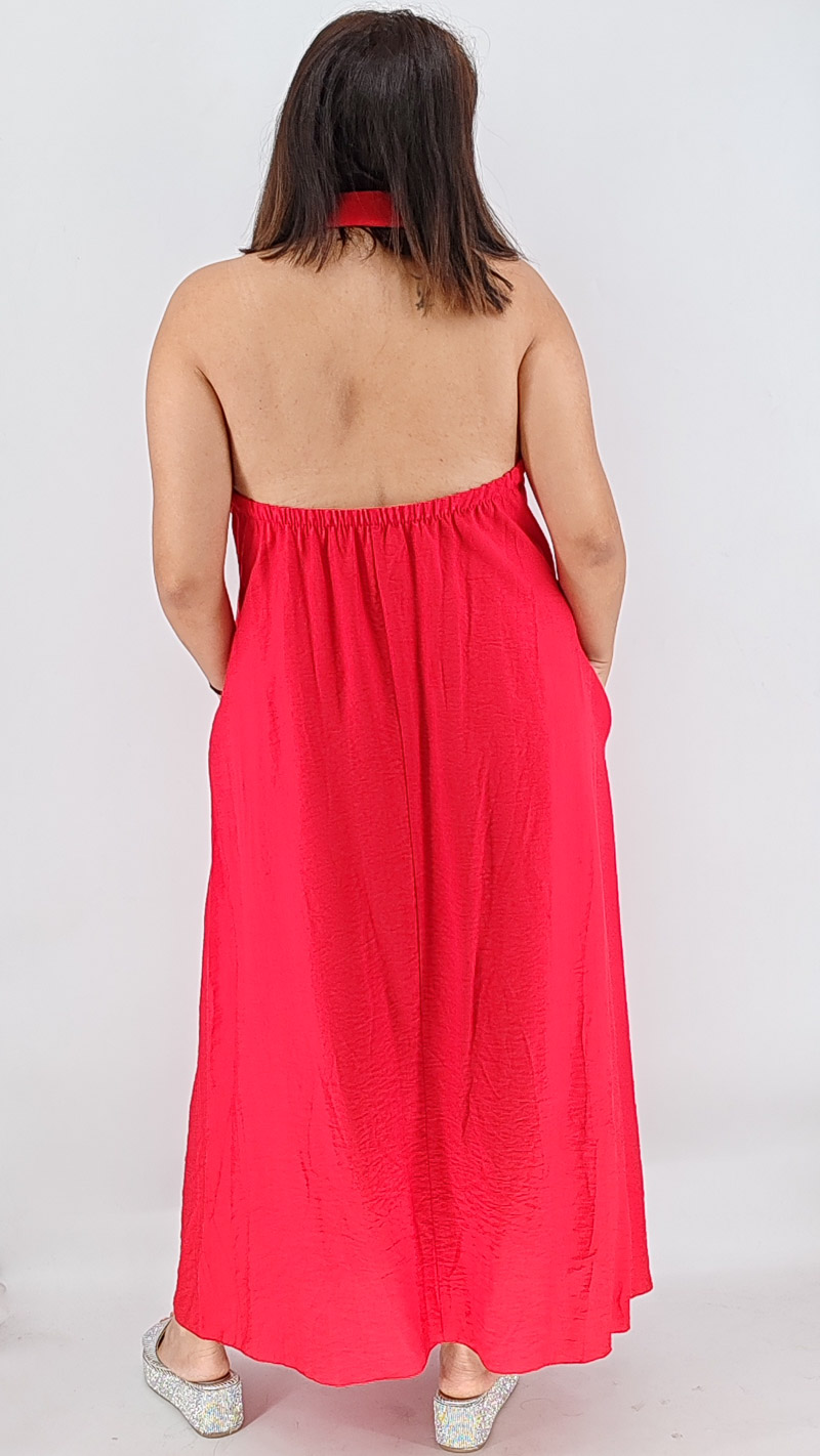 Φόρεμα σεμιζιέ, παρτό στους ώμους με γιακά και λάστιχο στην πλάτη. One size, καλύπτει από S έως XL άνετα