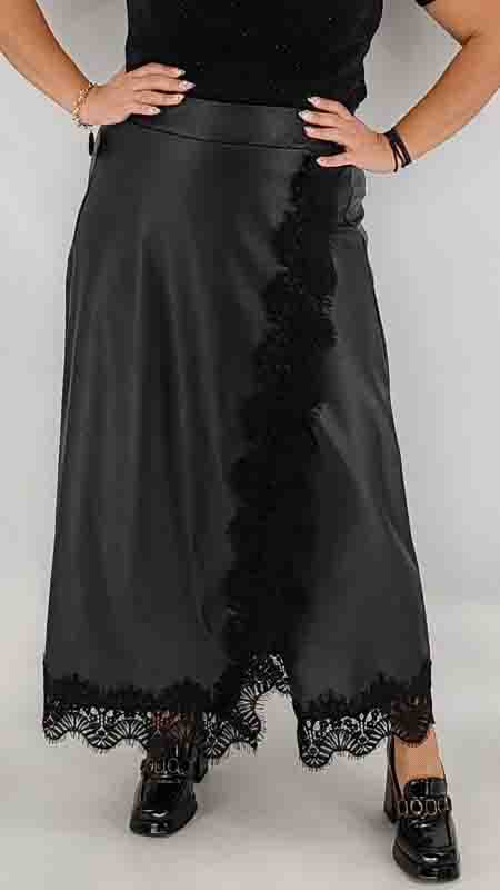 Δερματίνη φούστα κρουαζέ με λεπτομέρειες δαντέλας . One Size καλύπτει από S έως XL
