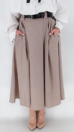 Φούστα με λάστιχο στη μέση από ύφασμα κοστουμιού με λεπτή ρίγα και κουφωτές και τσέπες, διαθέτει δική της ζώνη