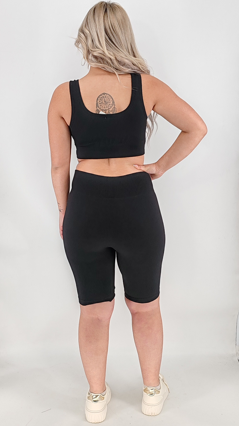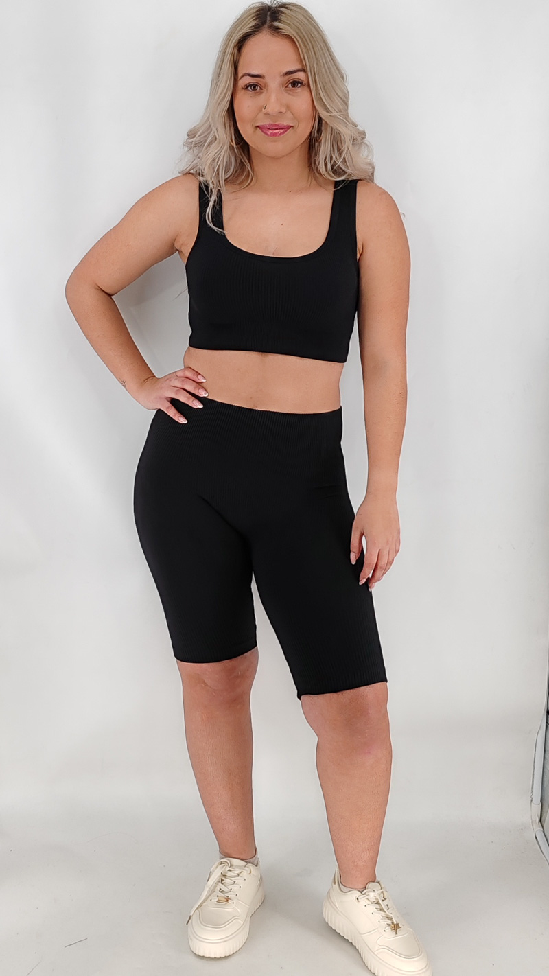 Γυμναστηριακό σετ με μπουστάκι και ψηλόμεσο κολάν ποδηλατικό σε δύο νούμερα, κάνει τέλεια εφαρμογή.