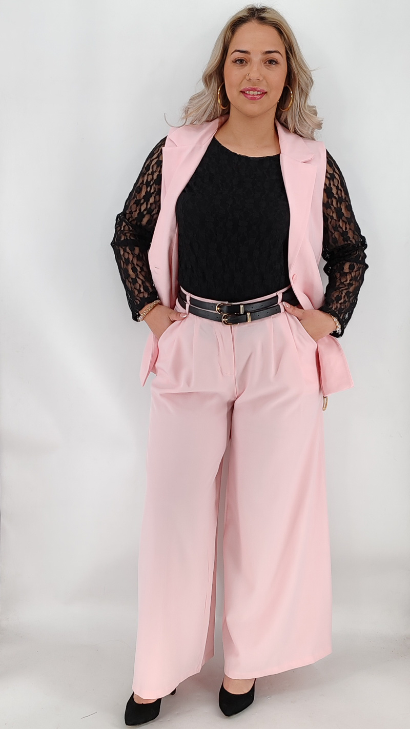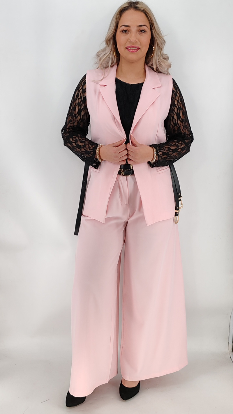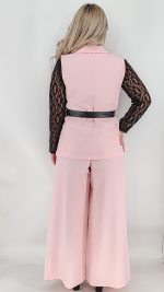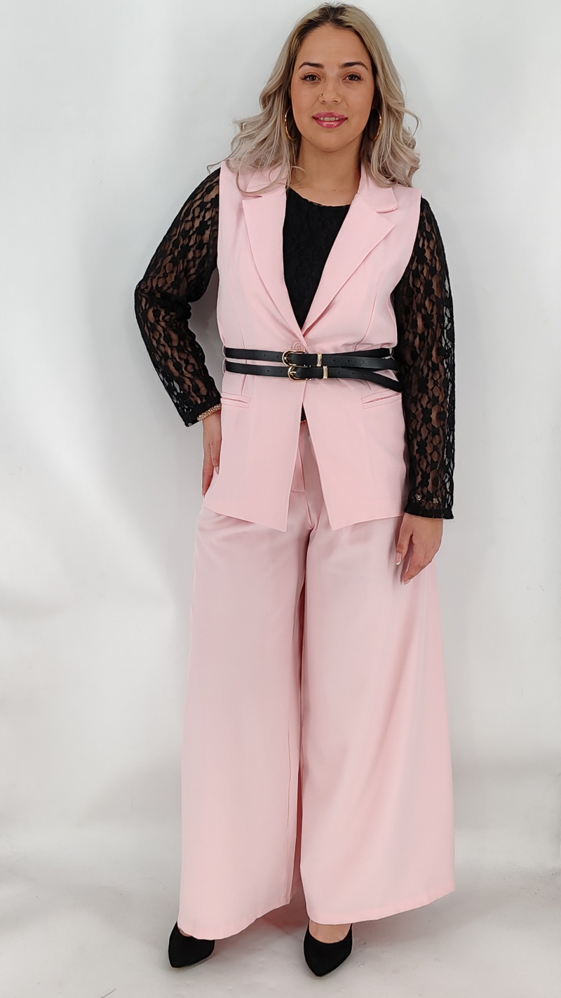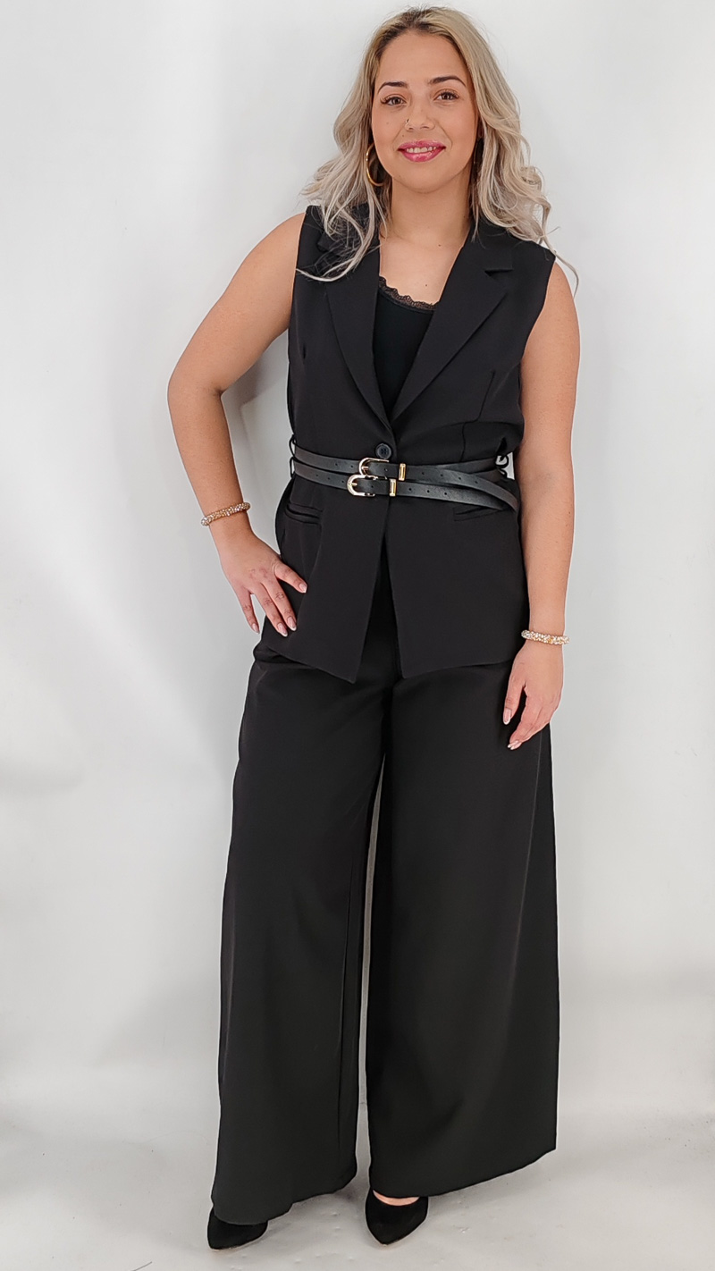 Αμάνικο σετ κοστούμι μεσάτο με παντελόνα ψηλόμεση και διπλά ζωνάκια στο σακάκι. Εξαιρετική ποιότητα υφάσματος και υπέροχη εφαρμογή σε μικρά size. Διατίθεται σε δύο νούμερα και καλύπτει από XS έως M