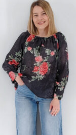 Μπλούζα από την gold συλλογή μας, από λινό ύφασμα με λάστιχο στο πάνω μέρος και μανσέτα, one size, καλύπτει έως L