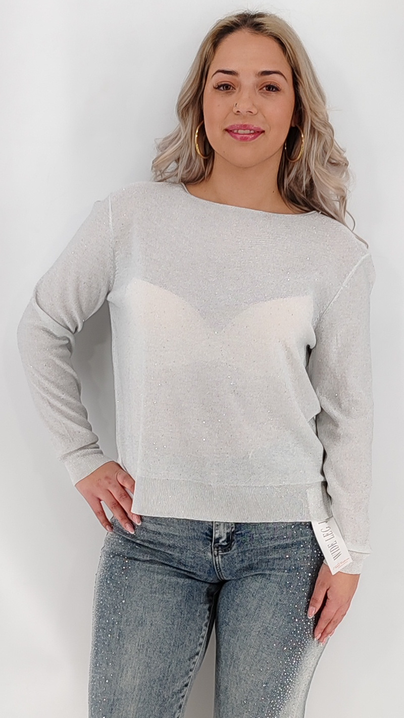 Μπλούζα λαιμόκοψη νημάτινη λούρεξ με ημιδιαφάνεια και διακριτική λάμψη. One size καλύπτει από S μέχρι XL