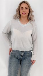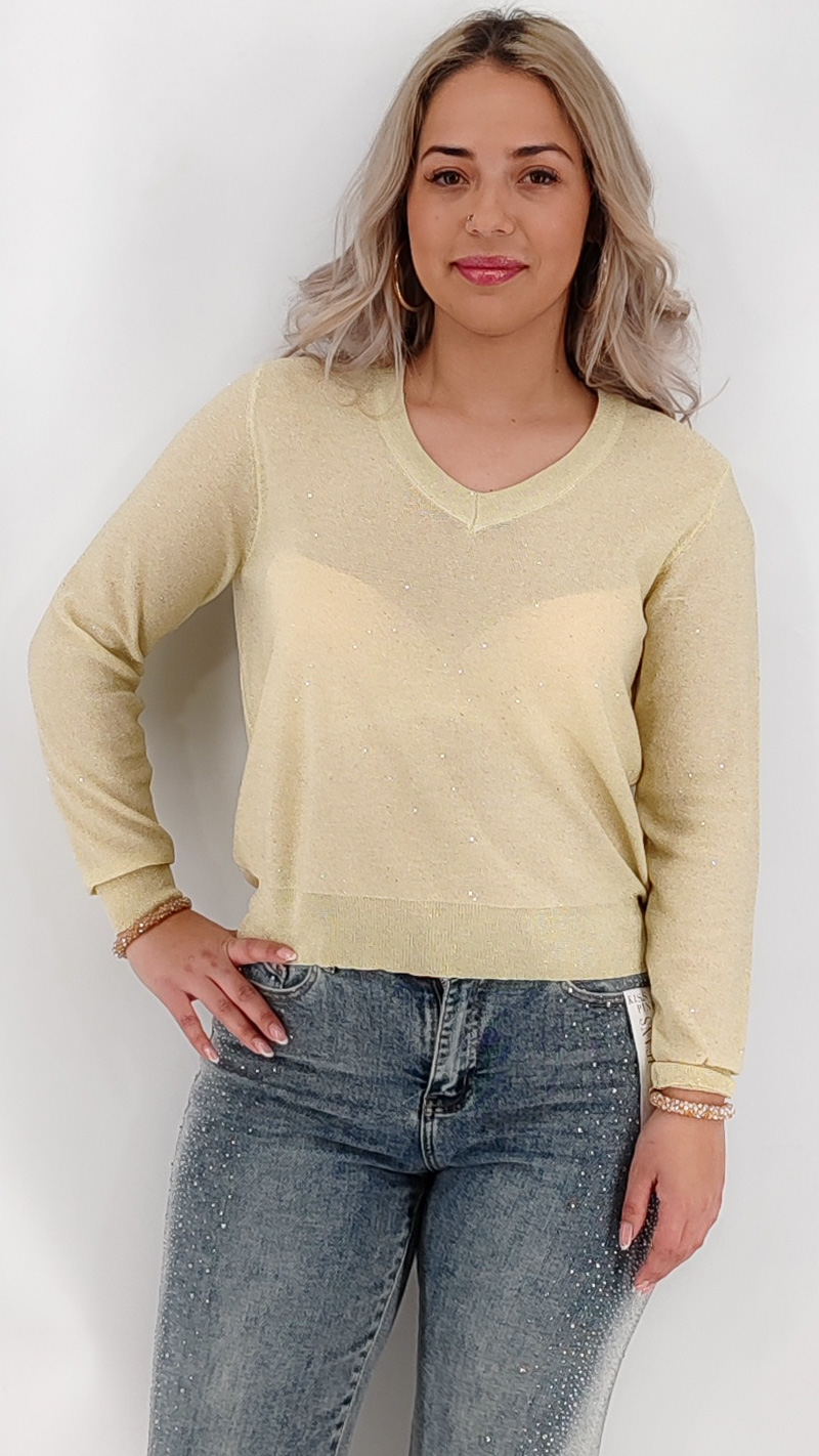 Μπλούζα V νημάτινη λούρεξ με ημιδιαφάνεια και διακριτική λάμψη. One size καλύπτει από S μέχρι XL