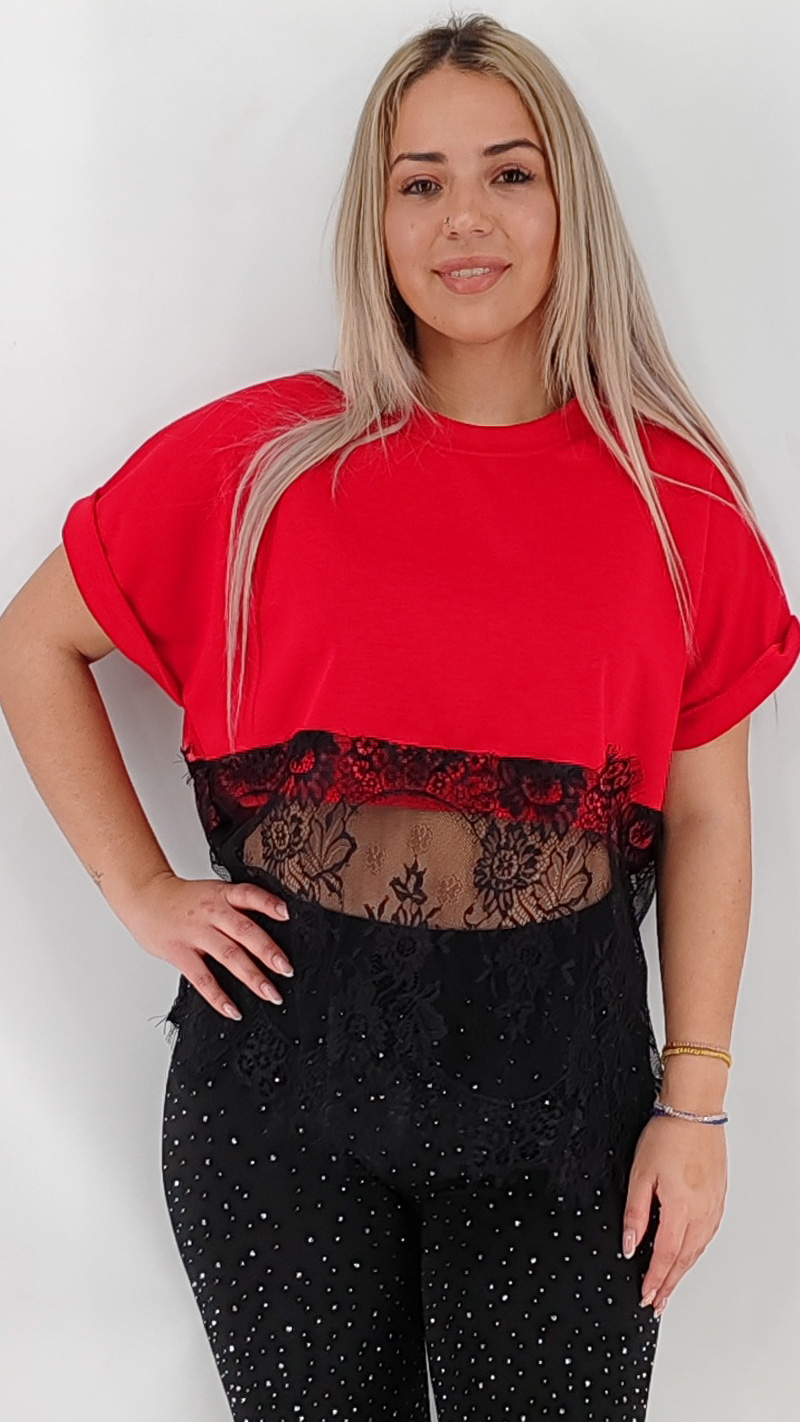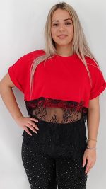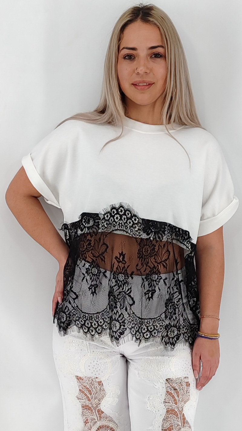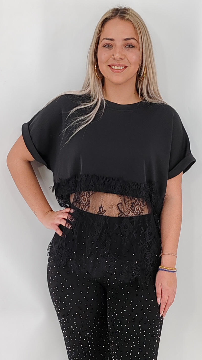 Μπλούζα με ζαπονέ μανίκι που έχει διαφάνεια με δαντέλα ιδιαίτερη και εντυπωσιακή. One size καλύπτει από S έως 2ΧL
