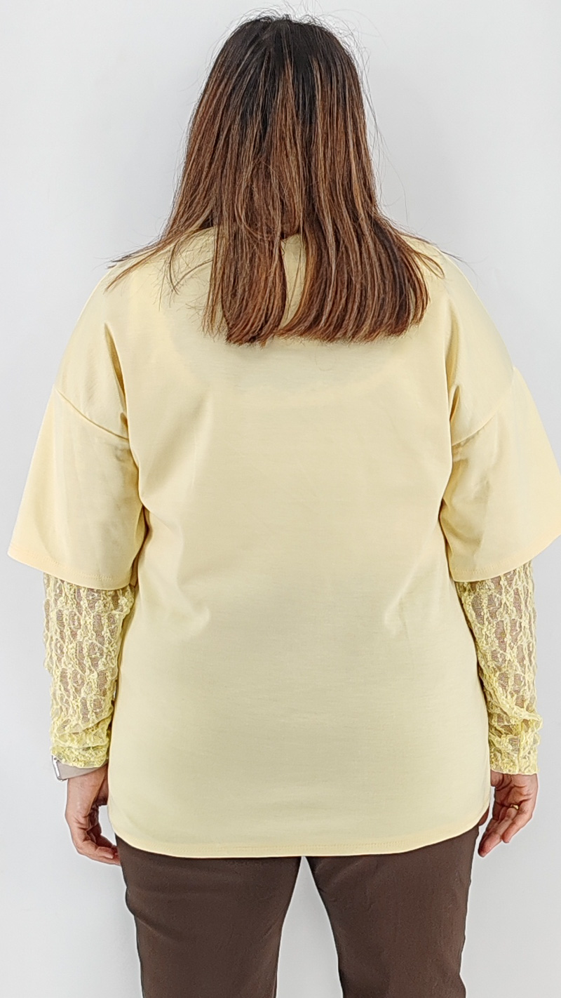 Μπλούζα Βούτυρο με ενσωματωμένο μανίκι δαντέλα. One size πολύ ελαστική και καλύπτει από S έως XL