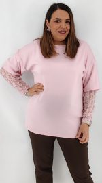 Home Valentine's Day Pink Collection Μπλούζα Βούτυρο Με Δαντέλα 1190-08
