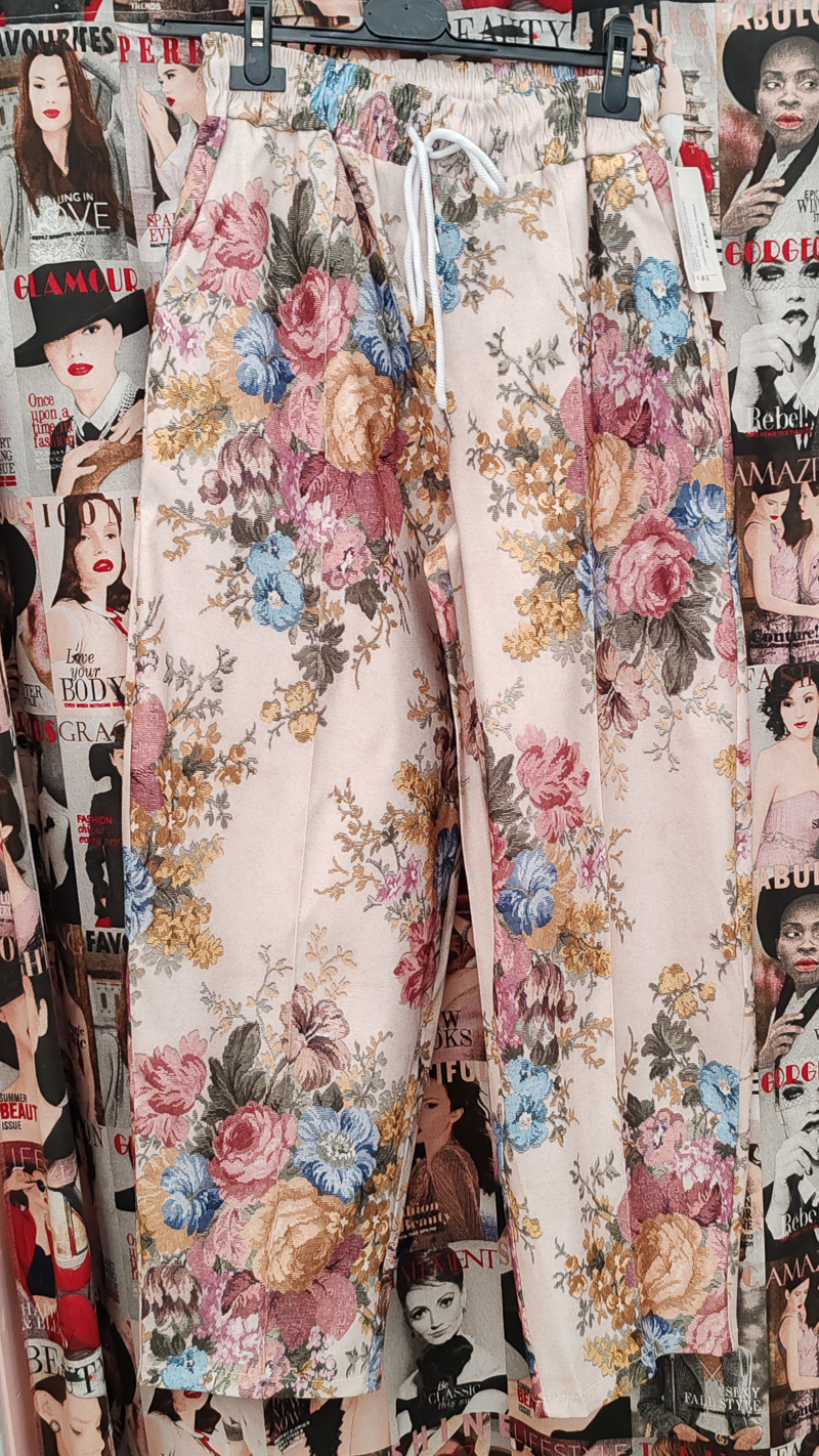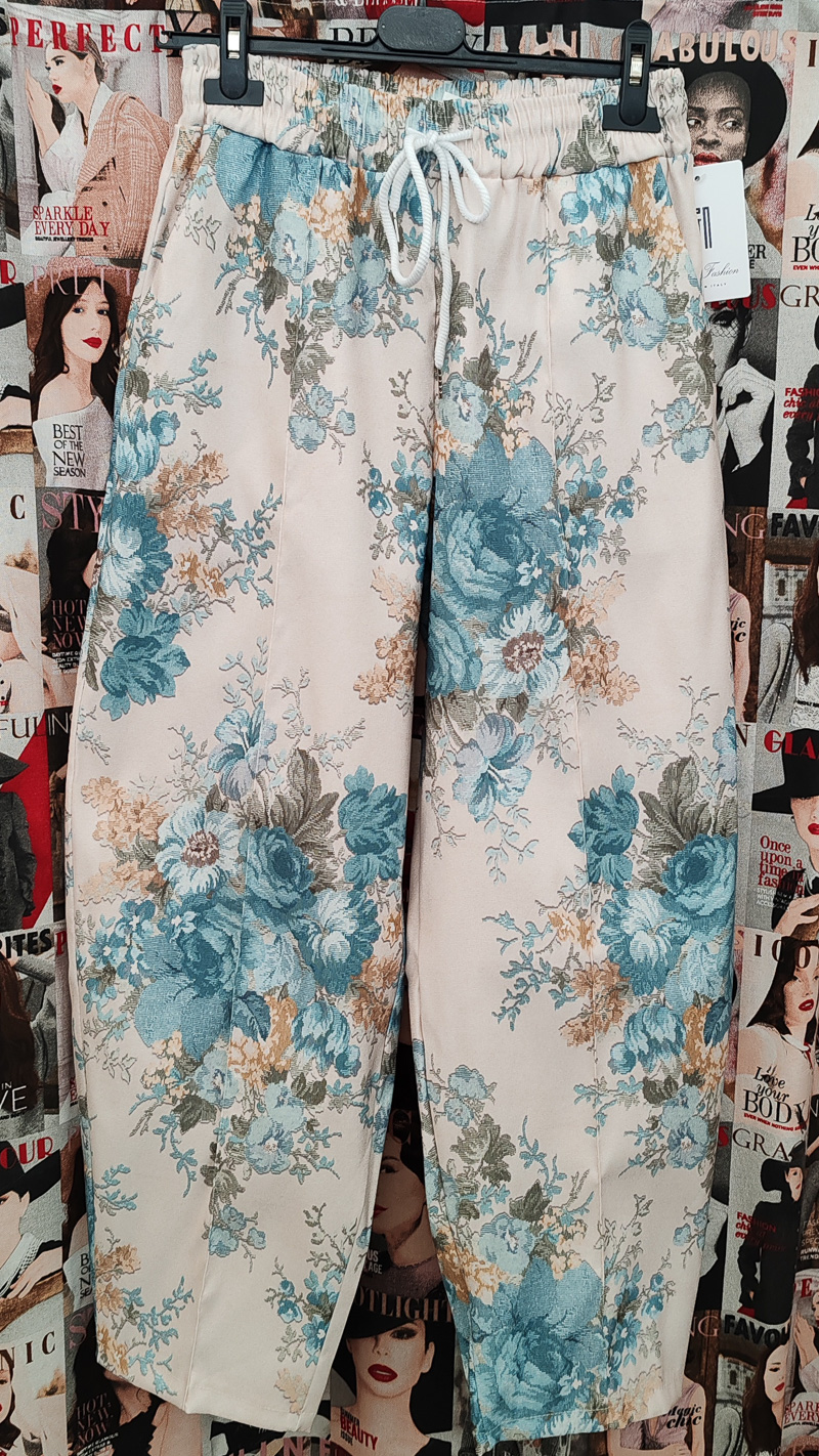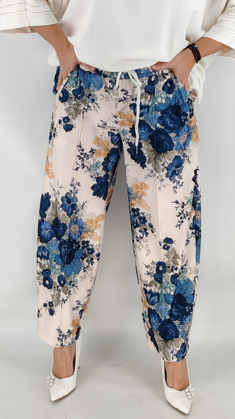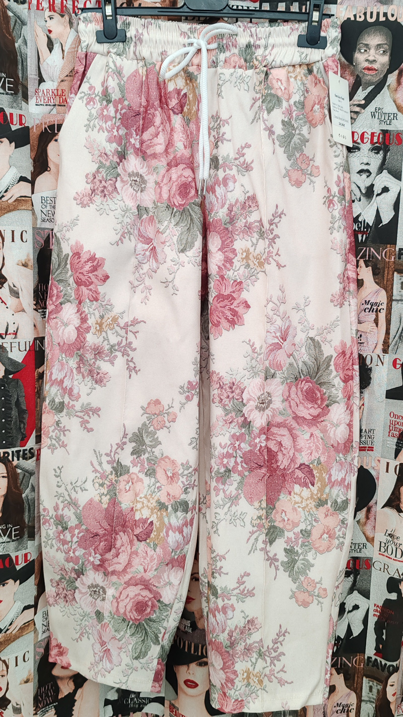 Παντελόνι σε γραμμή Barel με λάστιχο στο πάνω μέρος και τσέπες σε φλοράλ σχέδιο. Οne size καλύπτει από Μ έως 3ΧL.