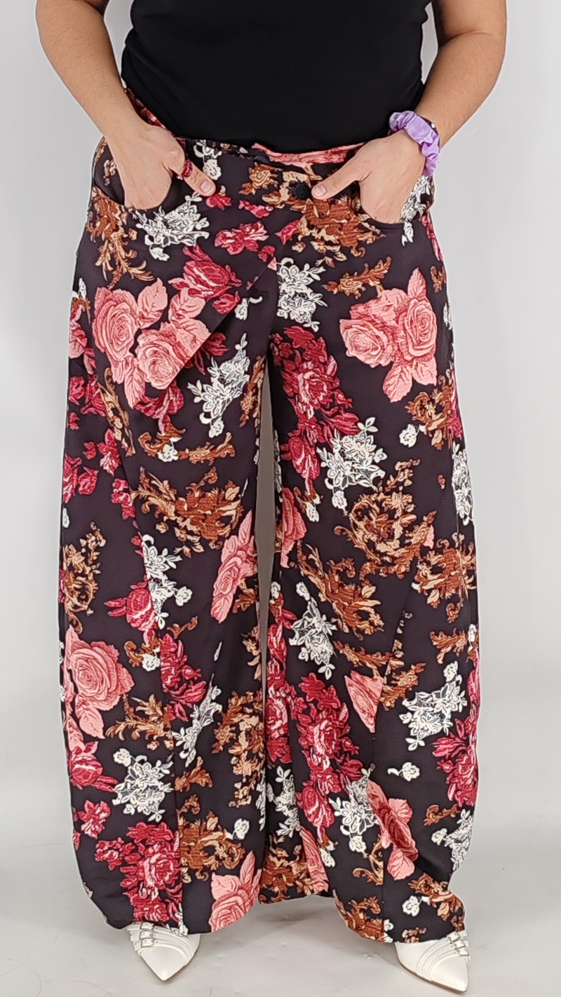 Παντελόνι ψηλόμεσο με τσέπες και ιδιαίτερο κούμπωμα σε στυλ παντελόνας, one size καλύπτει από S έως L.
