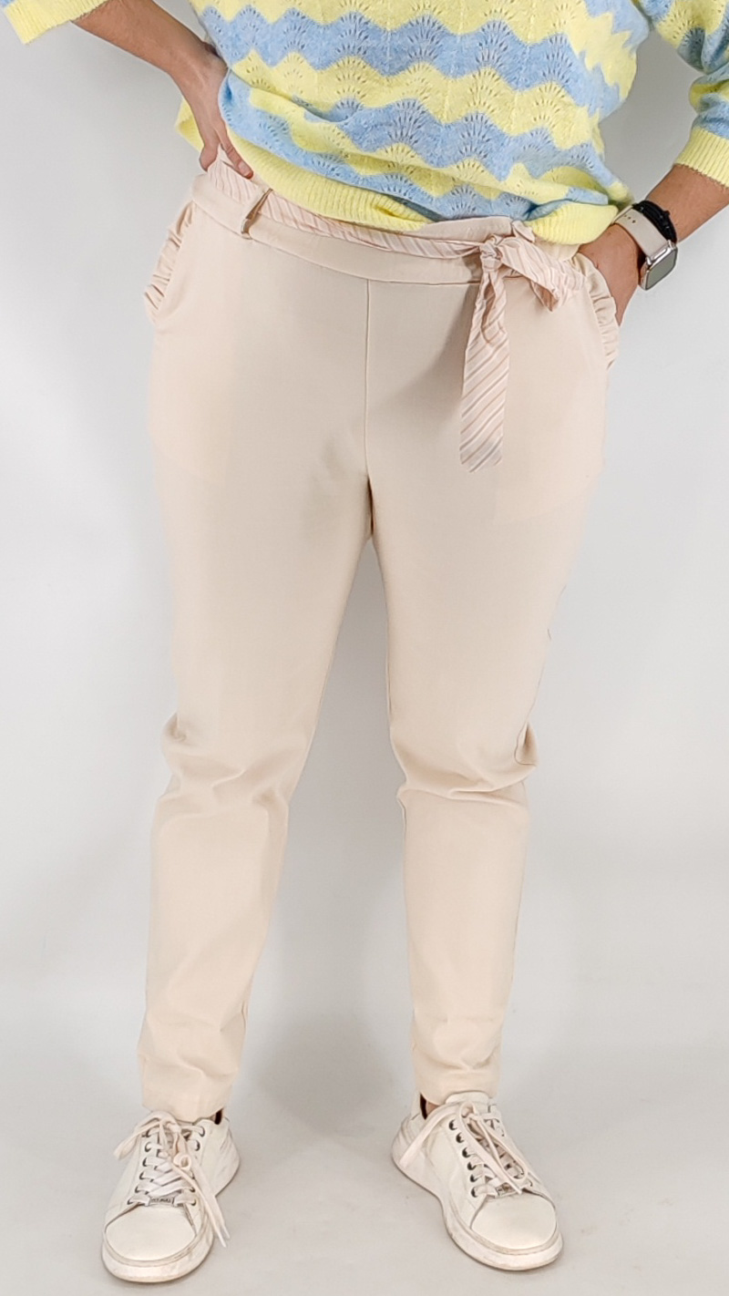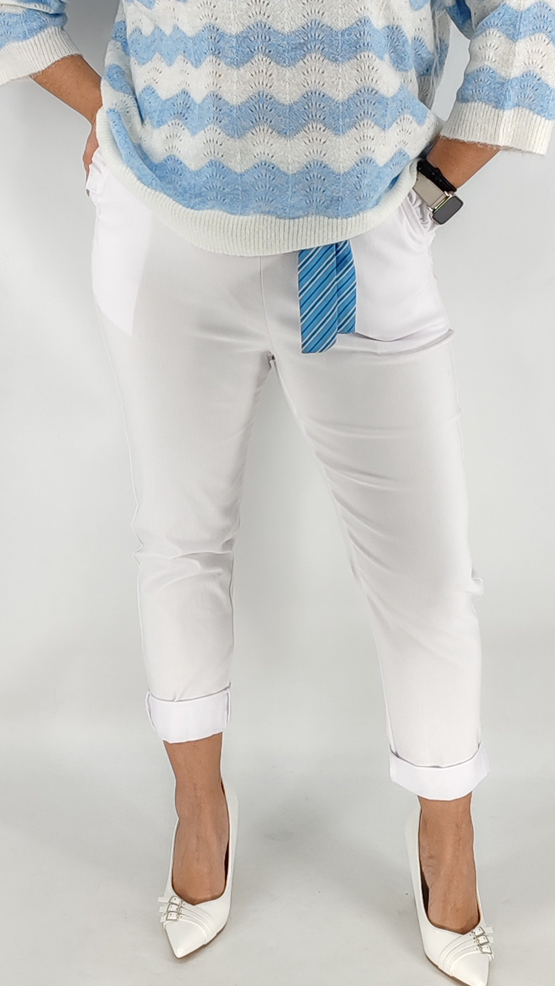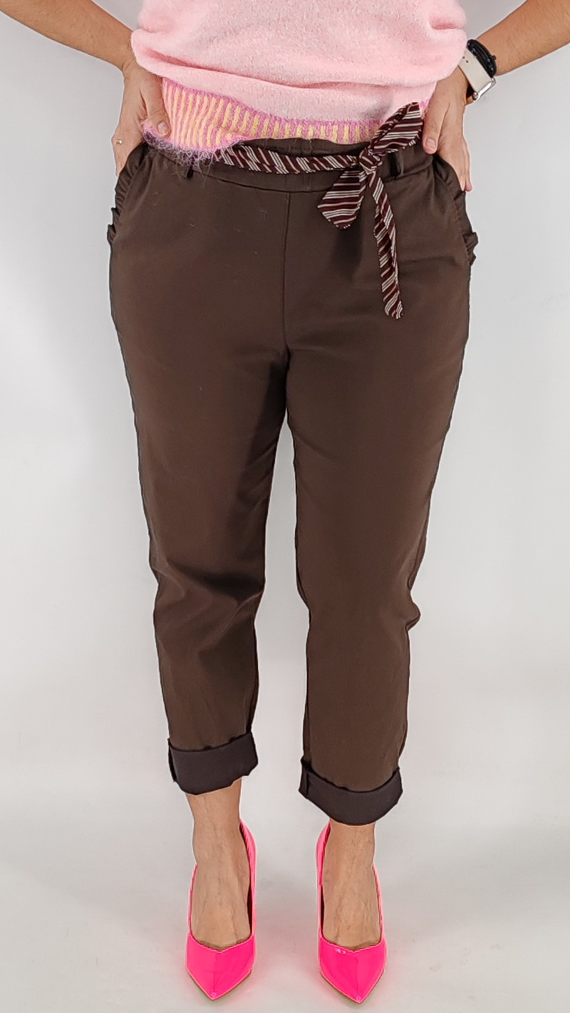 Παντελόνι από την basic σειρά μας, One size από ελαστική καμπαρτίνα. Είναι ψηλόμεσο με λάστιχο στο πάνω μέρος, τσέπες και  εφαρμοστή γραμμή, διαθέτει δική του ζώνη. Κολακεύει τη σιλουέτα και καλύπτει από S έως 2XL.