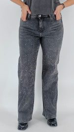 Plus Size Jean ελαστικό με στρας στο μπροστινό μέρος σε στυλ παντελόνας. Διαθέτει νούμερα από Μ έως 5XL