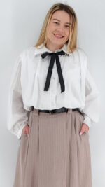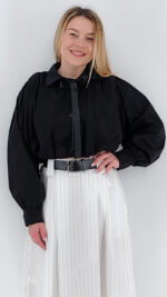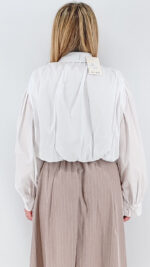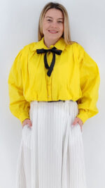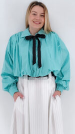 Πουκάμισο crop top από ποπλίνα βαμβακερή με μικρές σούρες στους ώμους και φαρδύ μανίκι. Διαθέτει κορδέλα στο λαιμό για έξτρα στυλ. One size