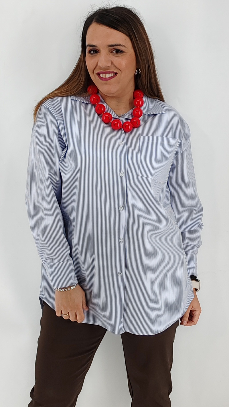 Πουκάμισο Oversize από ύφασμα ποπλίνα σε λεπτή ρίγα. One size καλύπτει από S έως 2XL