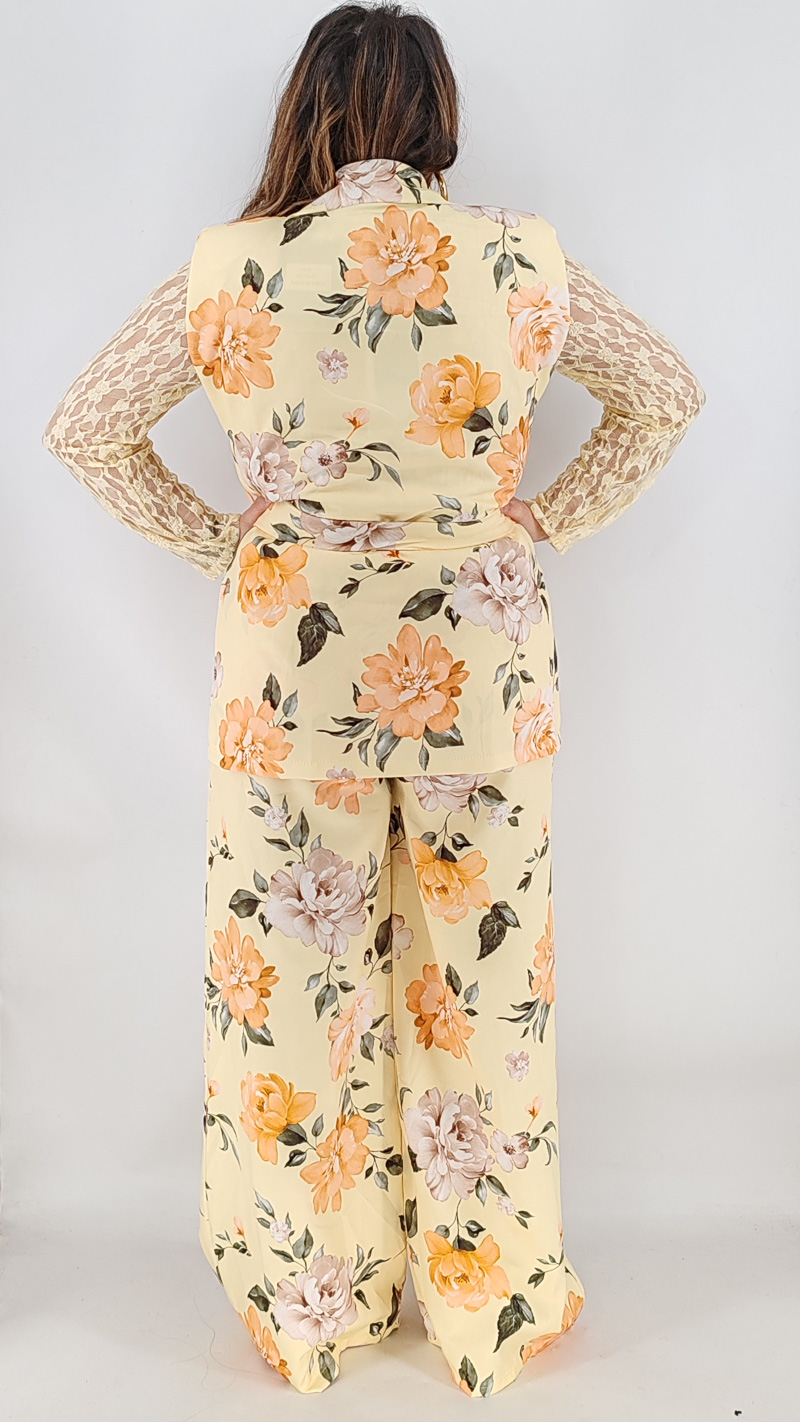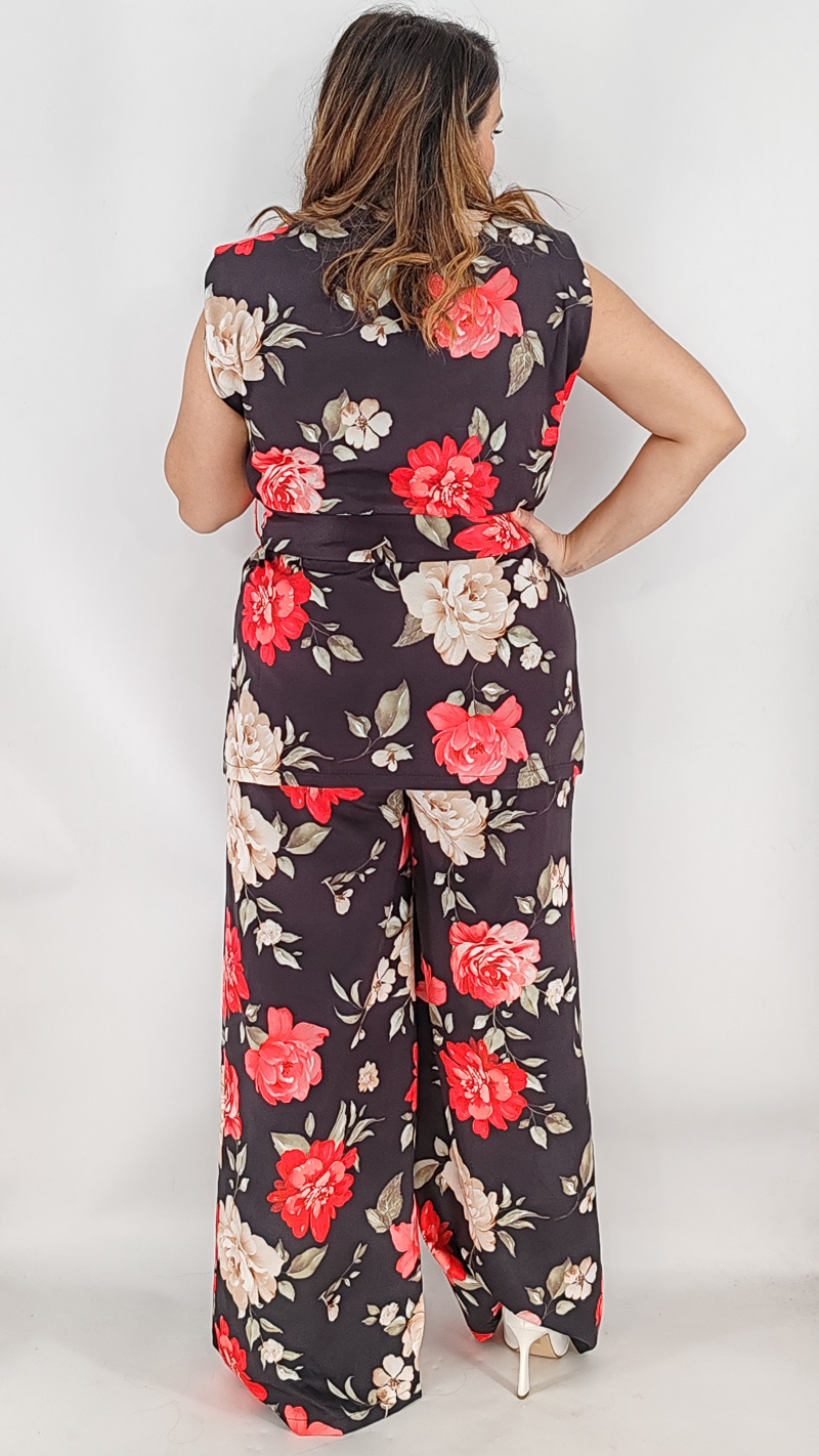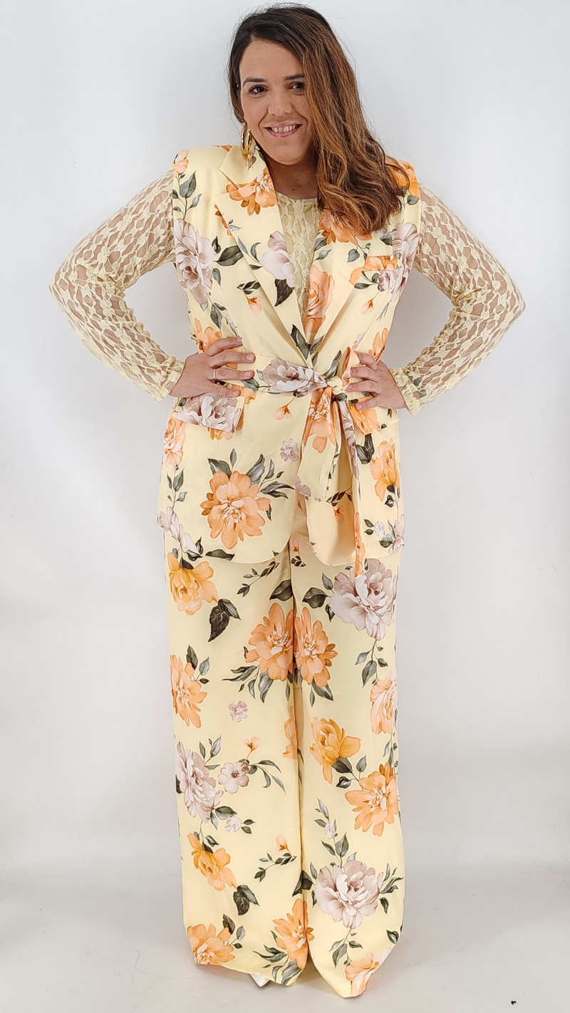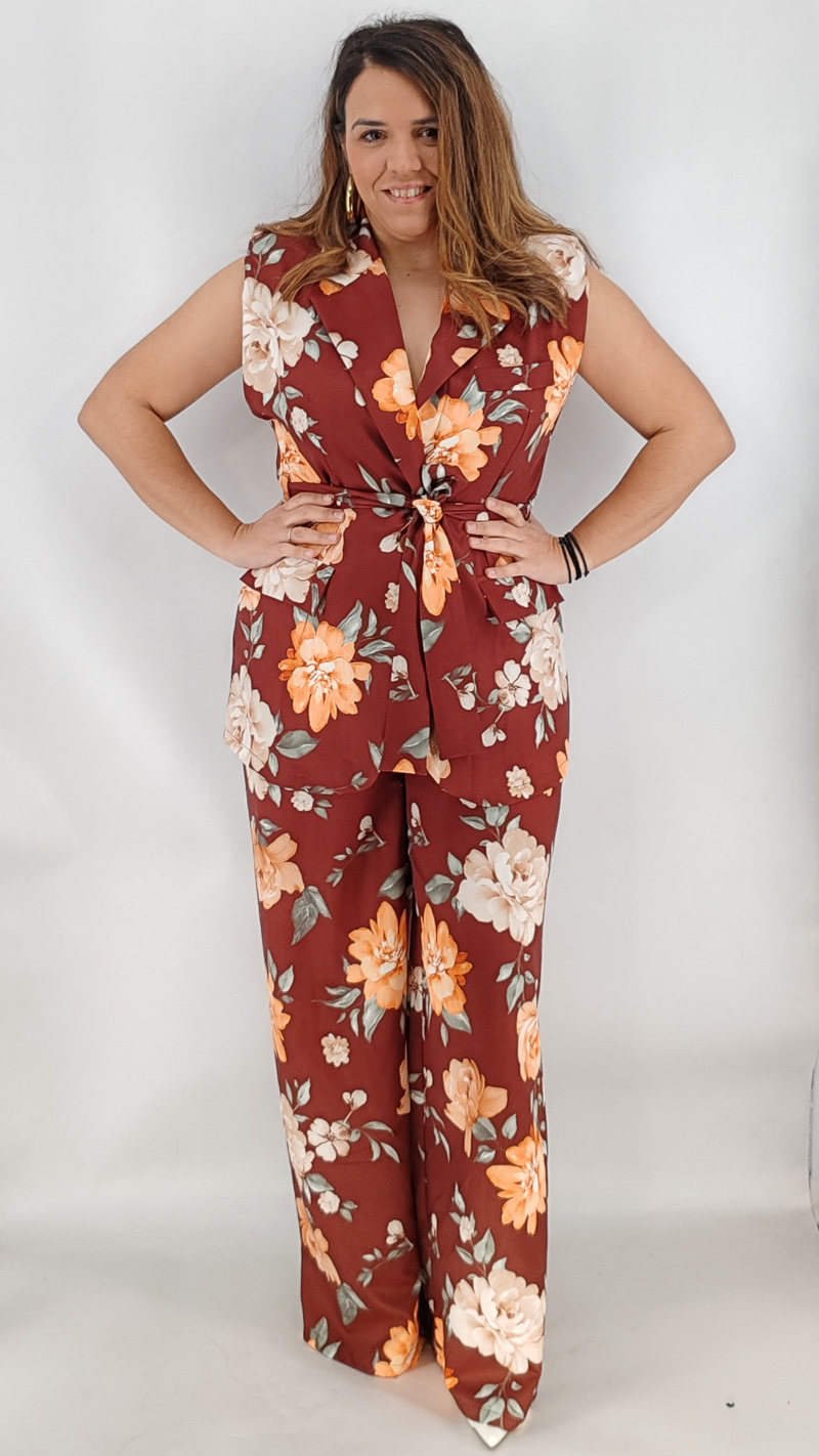 Σετ με αμάνικο σακάκι και βάτες και παντελόνα ψηλόμεση με λάστιχο και τσέπες. Κλείνει με κουμπί και διαθέτει δική του ζώνη. One size καλύπτει από S έως ΧL.