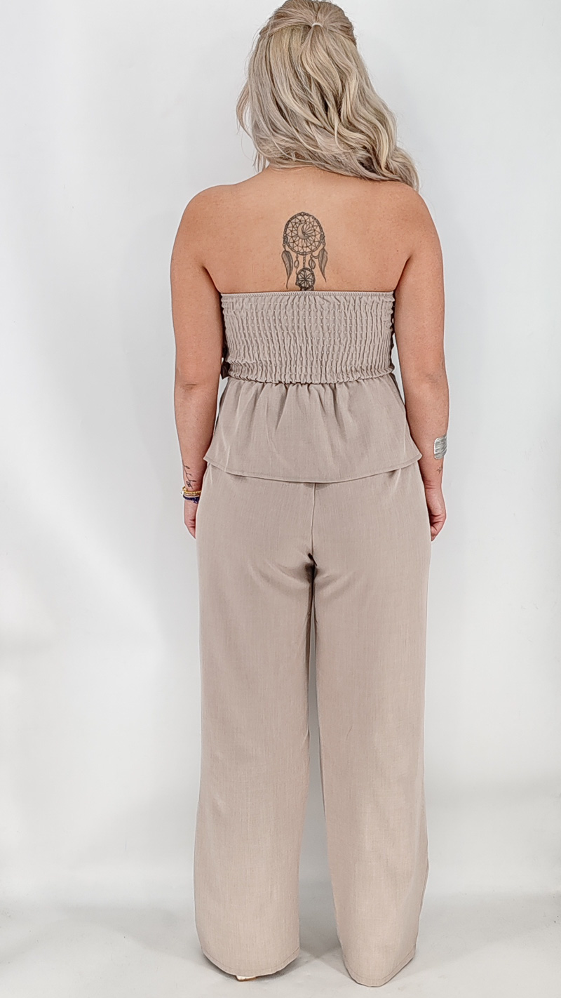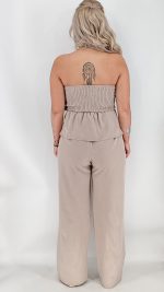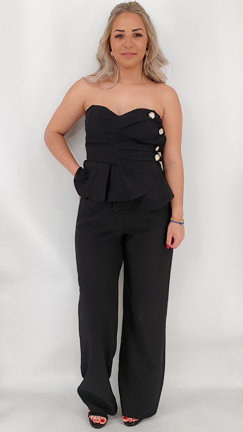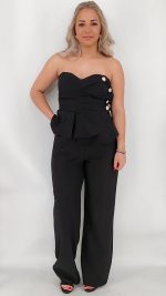Σετ με μπούστο στράπλες με ενσωματωμένα caps στολισμένο με χρυσά κουμπιά και παντελόνι ψηλόμεσο. One size καλύπτει από ΧS έως Μ