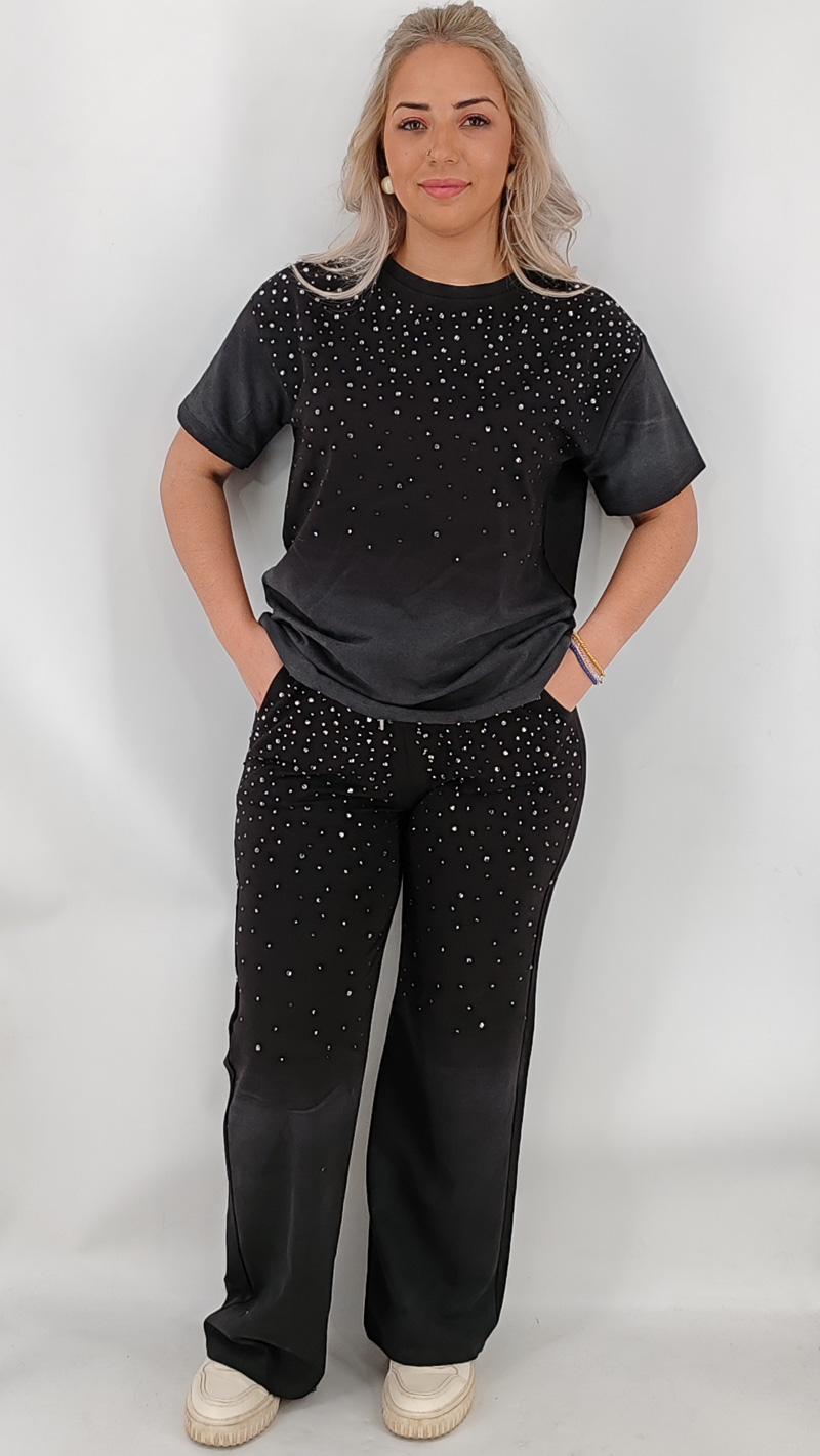 Σετ από βαμβακερό ύφασμα εξαιρετικής ποιότητας με στρας στο μπροστά μέρος με σχέδιο όμπρε, ελαστικό ύφασμα, δεν διαφανίζει. Διατίθεται σε 3 μεγέθη και καλύπτει από S έως 2XL