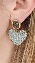 Ατσάλινο σκουλαρίκι καρφωτό με κρυσταλλάκια σε σχήμα καρδιά