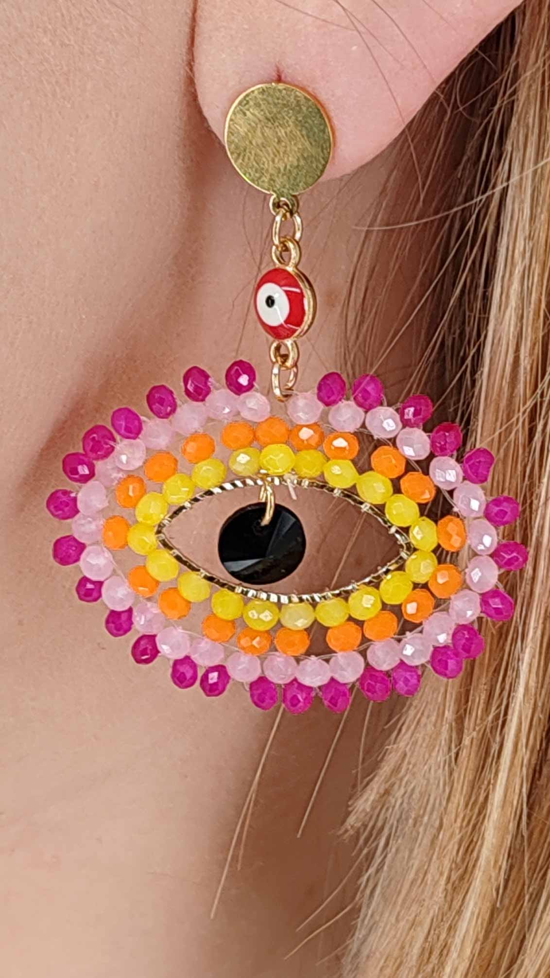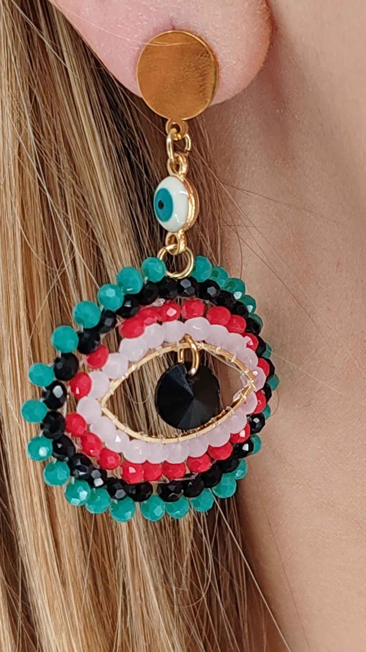 Ατσάλινο σκουλαρίκι καρφωτό με κρυσταλλάκια σε σχήμα μάτι