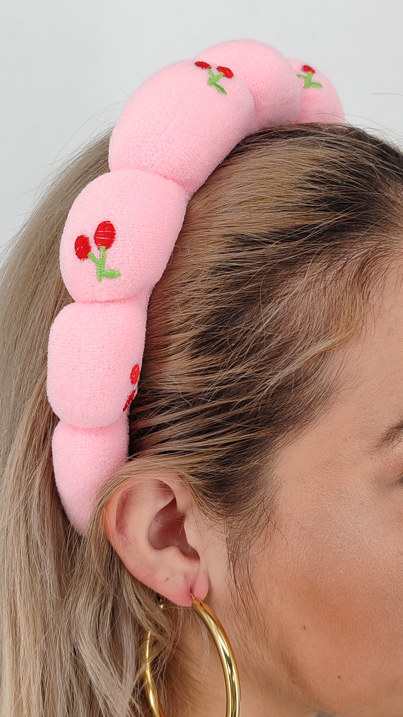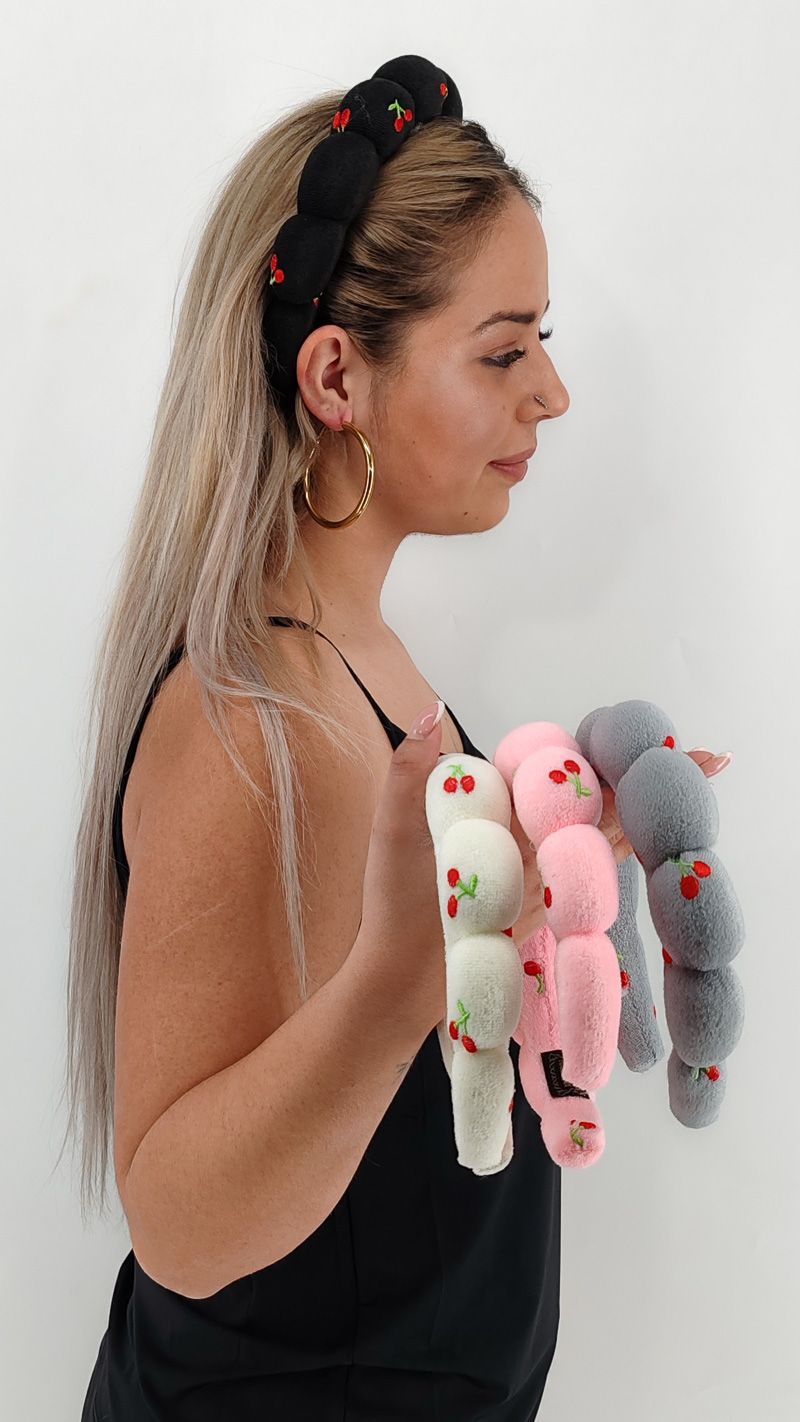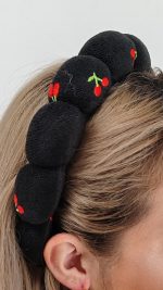 Στέκα μαλλιών για μακιγιάζ πετσετέ με κερασάκια.